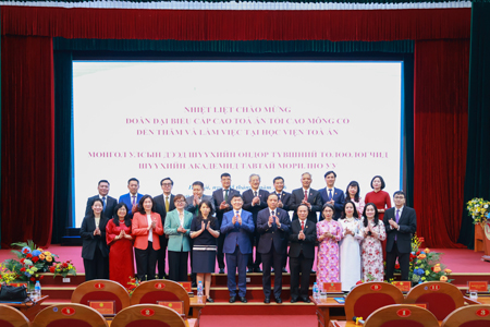Trong khuôn khổ chuyến thăm và làm việc tại Việt Nam, sáng 05/03/2026, Đoàn cán bộ cấp cao Toà án tối cao (TATC) Mông Cổ do Ngài Ganzorig Đamin, Chánh án Tòa án tối cao Mông Cổ làm trưởng đoàn tới thăm và làm việc tại Học viện Toà án.